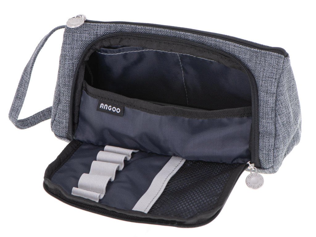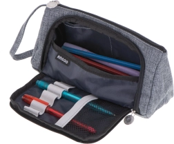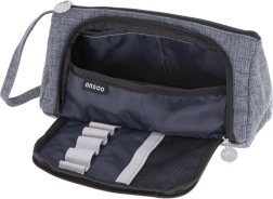 Πολυχρηστική κασετίνα 3-σε-1 σε κομψό γκρι χρώμα που λειτουργεί ως σχολική θήκη, νεσεσέρ και ταξιδιωτικός διοργανωτής. Προσφέρει δύο θήκες, πρακτικές τσεπούλες και ελαστικές θηλιές για τέλεια οργάνωση. Χάρη στο ανθεκτικό υλικό, το φερμουάρ και το λουράκι καρπού είναι ιδανική για το σχολείο, τα ταξίδια και το γραφείο.