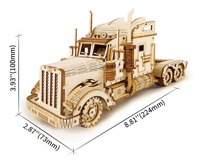 Αυτό το λεπτομερές και προσεγμένο μοντέλο φορτηγού είναι ένα εξαιρετικό παράδειγμα ακριβείας και δεξιοτεχνίας. Κατασκευασμένο από κομμάτια κομμένα με λέιζερ από κόντρα πλακέ φλαμουριάς 2 mm, τα οποία αφαιρούνται εύκολα από τη βάση. Στόχος του είναι να αναπτύξει την τεχνική σκέψη, τη φαντασία και τη λεπτή κινητικότητα.