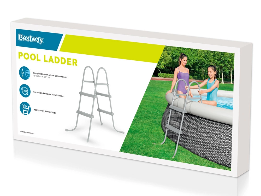 Η διπλής όψης μεταλλική σκάλα Bestway είναι εξαιρετική επιλογή για όσους αναζητούν ασφαλή και σταθερή πρόσβαση στην πισίνα. Εγκαθίσταται εύκολα και είναι συμβατή με πισίνες διαφόρων τύπων.