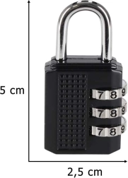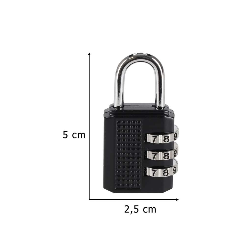 Αξιόπιστη ταξιδιωτική κλειδαριά με τρεις αριθμητικούς δίσκους, ιδανική για την ασφάλιση φερμουάρ βαλιτσών, σακιδίων, ντουλαπιών και μικρών ερμαρίων. Ο προεπιλεγμένος κωδικός είναι 000 και μπορείτε να τον αλλάξετε στο δικό σας συνδυασμό μέσα σε λίγες στιγμές. Χάρη στις συμπαγείς διαστάσεις και το χαμηλό βάρος χωρά άνετα στην τσέπη ή στην χειραποσκευή.