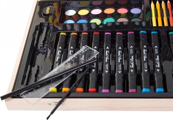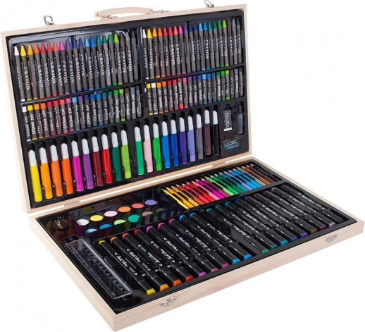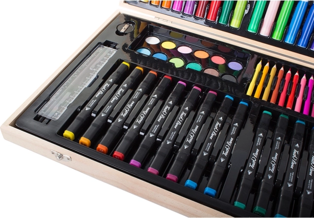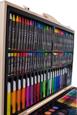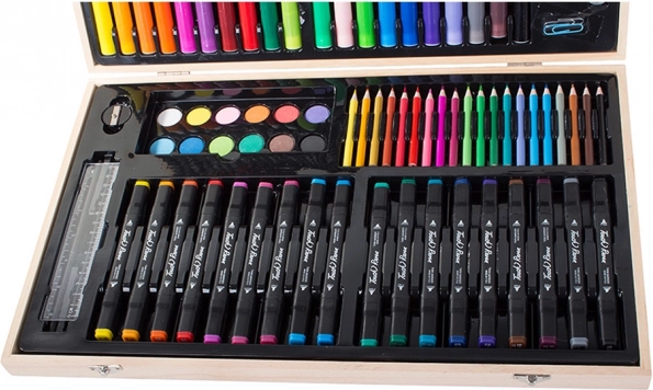 Το σετ είναι προσεκτικά τακτοποιημένο σε ανθεκτική ξύλινη θήκη, εξασφαλίζοντας εύκολη μεταφορά και οργάνωση. Κάθε εργαλείο έχει τη θέση του, πράγμα που σημαίνει ότι δεν θα χάσετε ποτέ το αγαπημένο σας μολύβι. Μετά την ολοκλήρωση των έργων σας, απλώς αποθηκεύστε τα όλα στη θήκη.