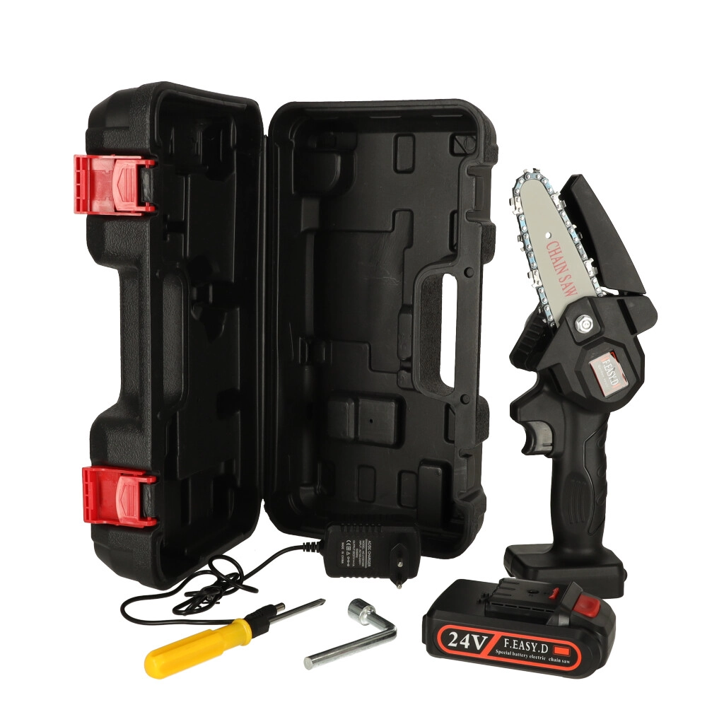Φορητό ασύρματο μίνι αλυσοπρίονο, ένας εξαιρετικός βοηθός για κάθε κηπουρό ή μάστορα. Χάρη στο χαμηλό βάρος και τις συμπαγείς διαστάσεις του, χρησιμοποιείται εύκολα και επιτρέπει αποτελεσματική εργασία ακόμη και σε δυσπρόσιτα σημεία.
