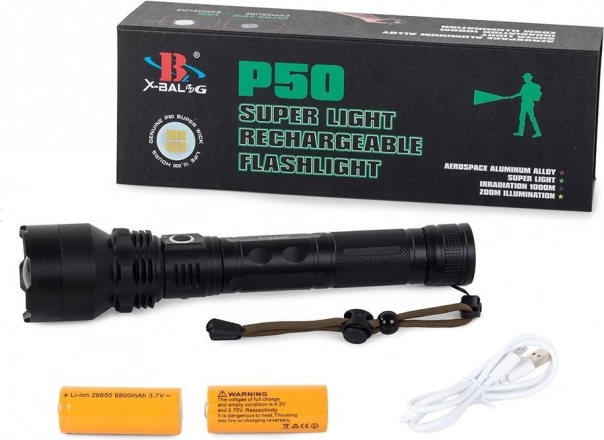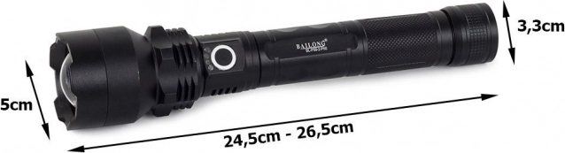 Το στιβαρό σώμα από αεροπορικού τύπου αλουμίνιο με σκληρά ανοδιωμένη επιφάνεια είναι ανθεκτικό σε κρούσεις και προστατευμένο σύμφωνα με IPX5. Η αντιολισθητική επιφάνεια, η εργονομική λαβή και ο ιμάντας καρπού αυξάνουν τη βεβαιότητα στο κράτημα. Δύο συσσωρευτές 26650 εξασφαλίζουν μεγάλη αυτονομία, η φόρτιση USB είναι βολική στο πεδίο και ο ενδείκτης LED ενημερώνει για την κατάσταση φόρτισης. Διαθέσιμες 3 λειτουργίες – 100 %, 50 % και στροβοσκόπιο.
