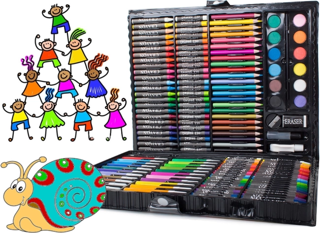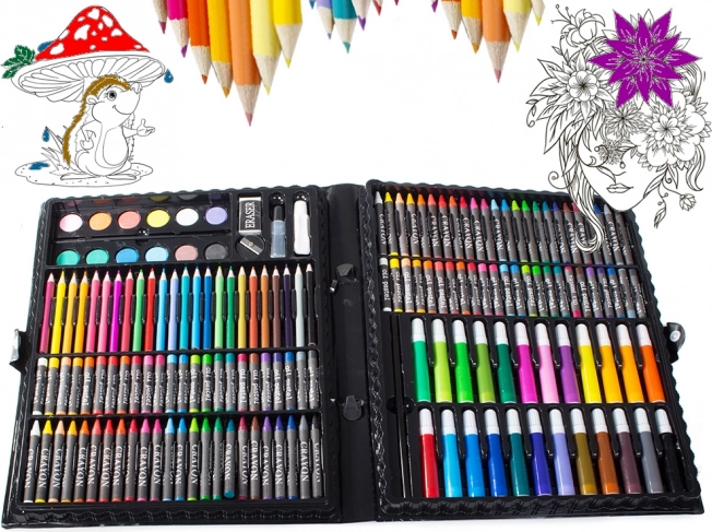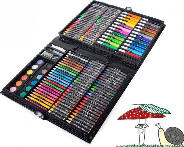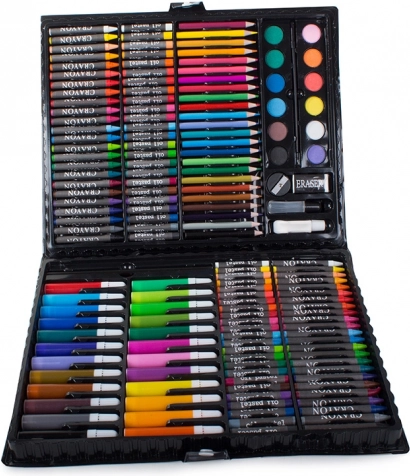 Από ξυλομπογιές και μαρκαδόρους μέχρι ακουαρέλες – 168 τεμάχια για σχέδιο, χρωμάτισμα και ζωγραφική, τακτοποιημένα σε ένα ευανάγνωστο βαλιτσάκι.