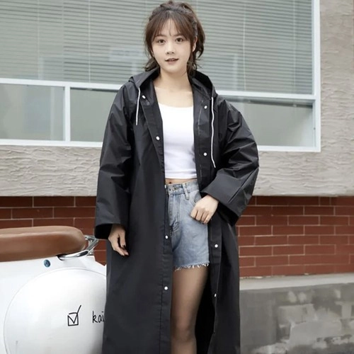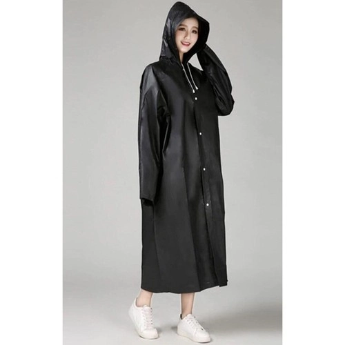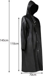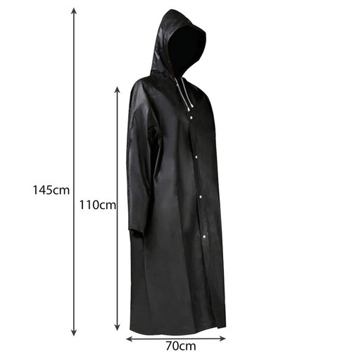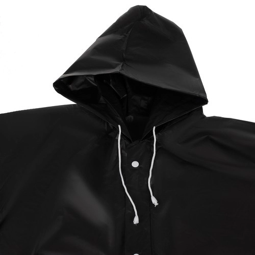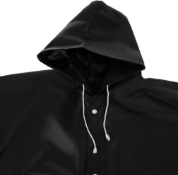 Ο μακρύς σχεδιασμός καλύπτει το μεγαλύτερο μέρος του σώματος και η κουκούλα με κορδόνια προστατεύει από πλάγια βροχή. Μήκος χωρίς κουκούλα 110 cm, συνολικές διαστάσεις 145 × 70 cm.