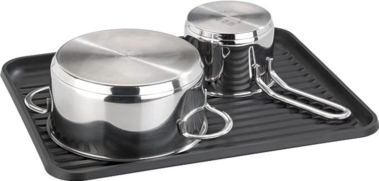 Ο έξυπνος δίσκος αποστράγγισης με πλαϊνή έξοδο οδηγεί το νερό κατευθείαν στον νεροχύτη, ώστε να μην μένουν λιμνούλες στον πάγκο. Το αποσπώμενο καλαθάκι για μαχαιροπήρουνα μπορεί να κρεμαστεί στις πλαϊνές ράβδους ανάλογα με τις ανάγκες, για καθαρό και υγιεινό στέγνωμα. Η πρακτική διαρρύθμιση οργανώνει πιάτα, μπολ και κούπες.