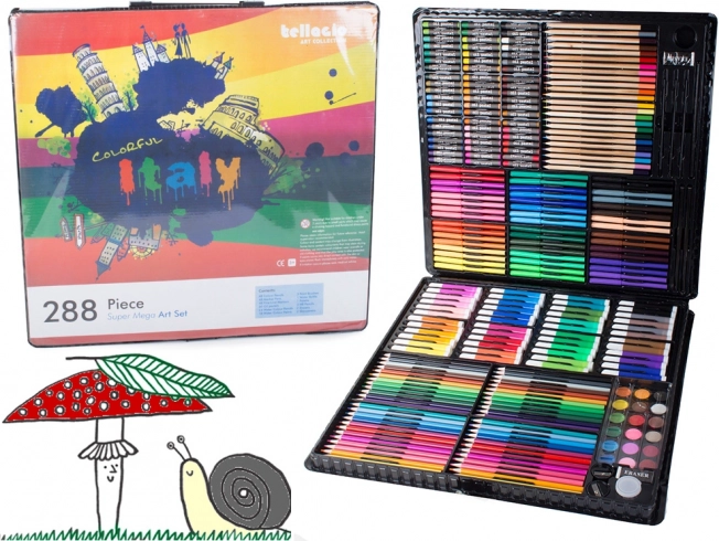 Περιλαμβάνει όλα όσα χρειάζονται για την ανάπτυξη της δημιουργικότητας: ξυλομπογιές, μαρκαδόρους, λαδοπαστέλ και υδατοχρώματα – συνολικά 288 στοιχεία.
