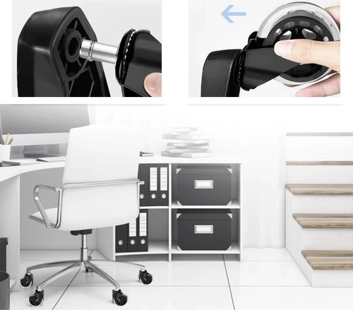 Η εύκολη τοποθέτηση με σύστημα "pop & push" σημαίνει ότι τα τροχάκια αντικαθίστανται γρήγορα χωρίς ανάγκη για ειδικά εργαλεία. Είναι καθολικά και ταιριάζουν στις περισσότερες καρέκλες της αγοράς με άξονα διαμέτρου 11 mm.