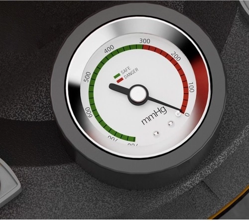 - Το μανόμετρο επιτρέπει την παρακολούθηση της πίεσης έως 760 mmHg, διασφαλίζοντας μέγιστη ασφάλεια κατά τη χρήση.