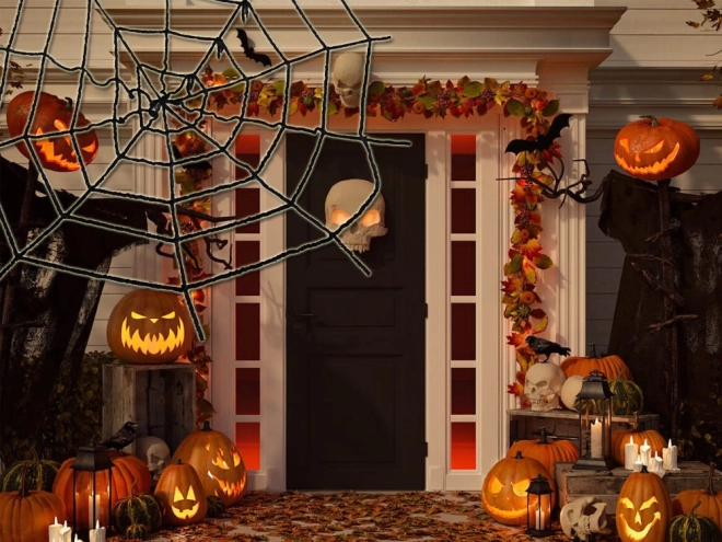 Ο μεγάλος μαύρος ιστός μεταμορφώνει αμέσως τη βεράντα ή την είσοδο σε μια τρομακτική σκηνή. Ιδανικός για να υποδέχεστε τα παιδιά για «treat or trick» και για τη διακόσμηση του σπιτιού.