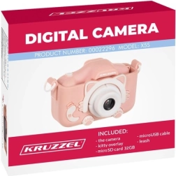 Η χαριτωμένη παιδική φωτογραφική μηχανή KRUZZEL με οθόνη 2'' προσφέρει λήψη φωτογραφιών και βίντεο σε Full HD, μπροστινή selfie κάμερα, 5 ενσωματωμένα παιχνίδια και πολλά διασκεδαστικά πλαίσια και φίλτρα. Περιλαμβάνει κάρτα 32GB, προστατευτικό σιλικονούχο κάλυμμα γατούλα, λουράκι και καλώδιο USB – ιδανική πρώτη κάμερα για μικρούς φωτογράφους από 3 ετών.
