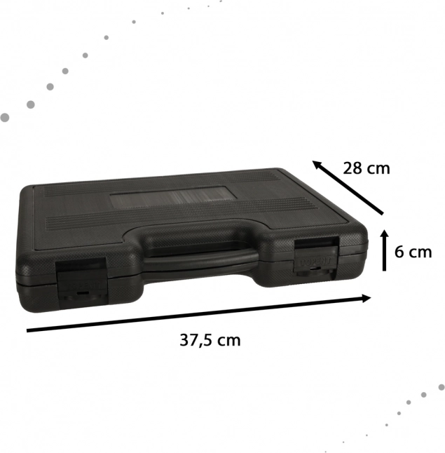 Όλα είναι τοποθετημένα σε ανθεκτικό πλαστικό βαλιτσάκι με σαφή σήμανση των θέσεων, ώστε να έχετε πάντα το σωστό εξάρτημα άμεσα διαθέσιμο. Το σετ είναι ιδανικό για επαγγελματίες και απαιτητικούς ερασιτέχνες που αναζητούν τάξη, φορητότητα και πολυχρηστικότητα σε μία λύση.