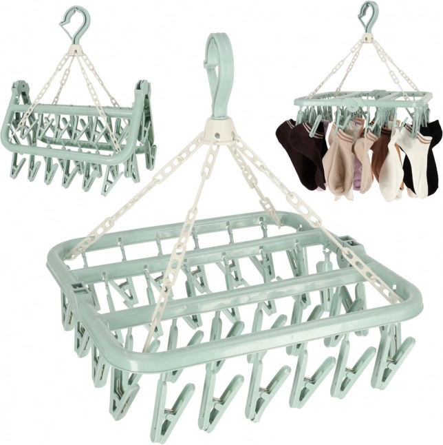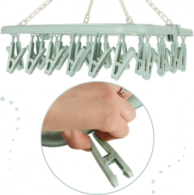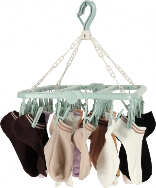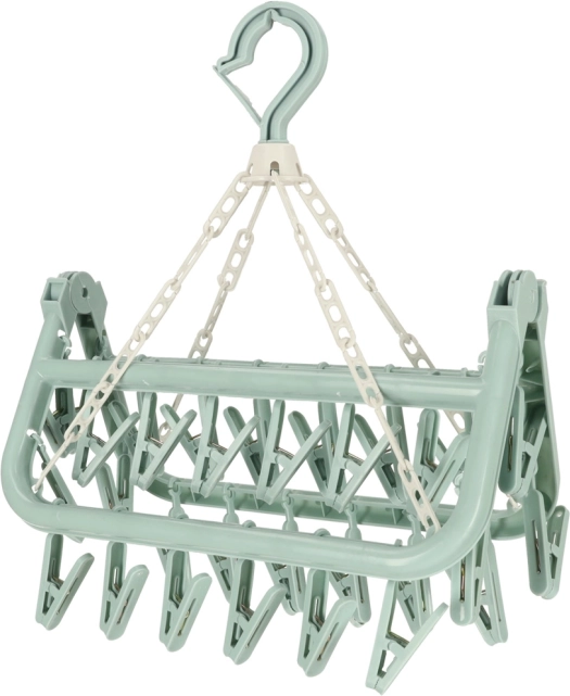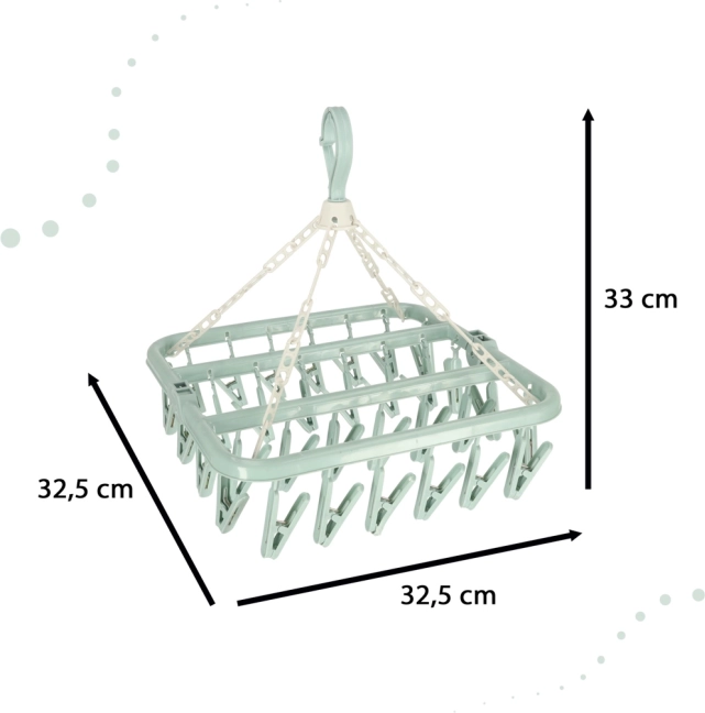 Η καθολική πλαστική απλώστρα είναι απαραίτητος βοηθός για κάθε νοικοκυριό. Περιλαμβάνει 32 μανταλάκια που επιτρέπουν το στέγνωμα μεγάλης ποσότητας μικρών ρούχων. Η συμπαγής κατασκευή της επιτρέπει να κρεμιέται στο μπάνιο, στο μπαλκόνι ή σε μεγάλη επιδαπέδια απλώστρα, συμβάλλοντας στην εξοικονόμηση χώρου.