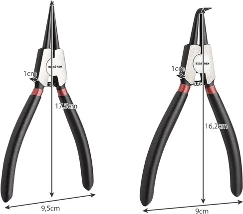 Δύο ίσια και δύο κυρτά εργαλεία καλύπτουν τις περισσότερες εφαρμογές με εσωτερικούς και εξωτερικούς ασφαλιστικούς δακτυλίους.