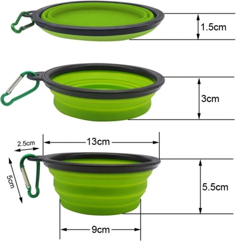 Πρακτικό πτυσσόμενο σιλικονούχο μπολ για σκύλους, ιδανικό για εκδρομές, ταξίδια και τις καθημερινές βόλτες. Χάρη στην ελαφριά κατασκευή, το καραμπίνερ και τις συμπαγείς διαστάσεις, το προσαρμόζετε εύκολα σε σακίδιο ή ζώνη. Ο ανθεκτικός στη θερμότητα σιλικόνης, το γρήγορο άνοιγμα και ο εύκολος καθαρισμός το καθιστούν εξαιρετικό βοηθό για νερό και τροφή.