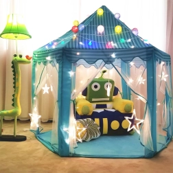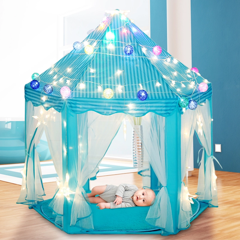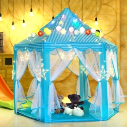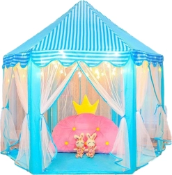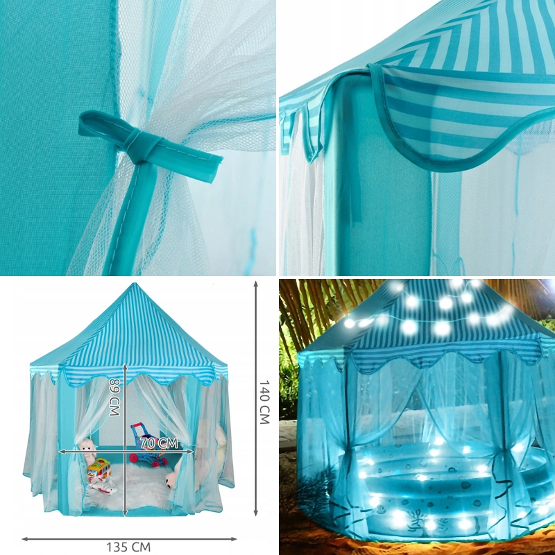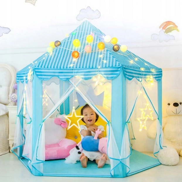 Αυτή η εξαγωνική παιδική σκηνή είναι ιδανική επιλογή για όλες τις μικρές πριγκίπισσες και πρίγκιπες που επιθυμούν έναν μαγικό χώρο για τα παιχνίδια τους. Χάρη στον ευάερο σχεδιασμό της με δυνατότητα μετακίνησης των κουρτινών, προσφέρει αρκετό χώρο για πολλά παιδιά. Διπλώνει γρήγορα και μεταφέρεται εύκολα χάρη στην παρεχόμενη τσάντα αποθήκευσης με χερούλι.