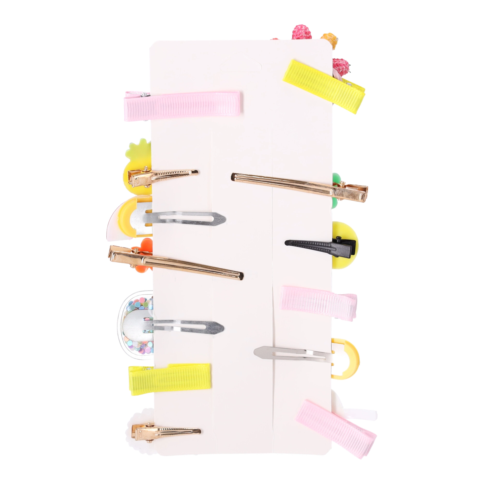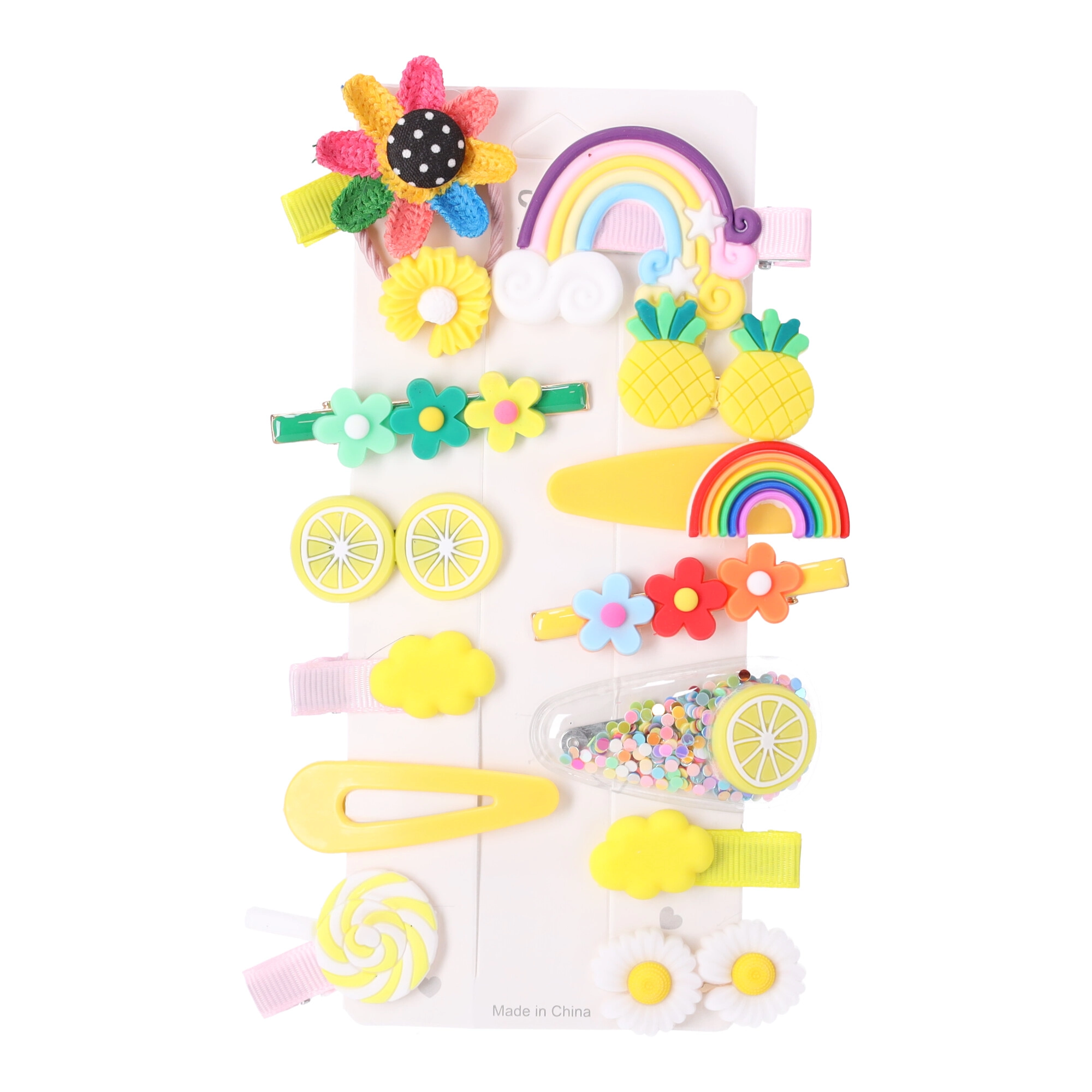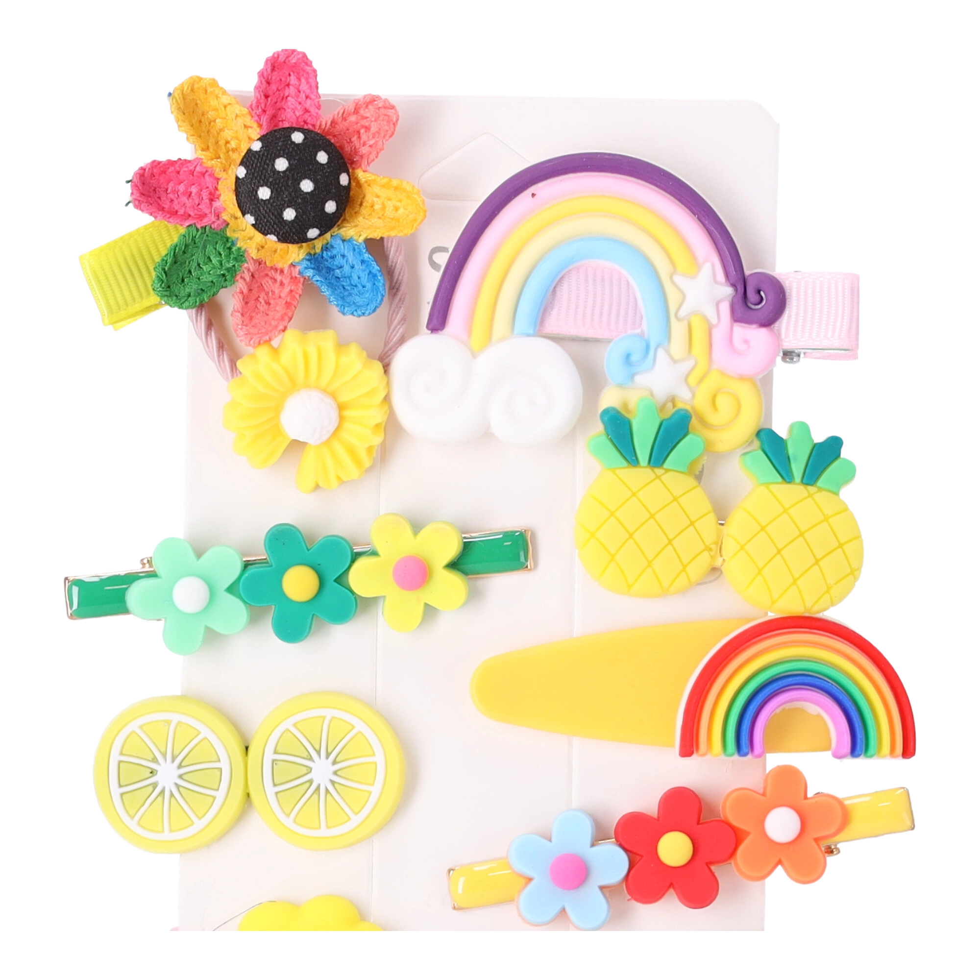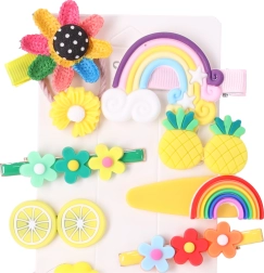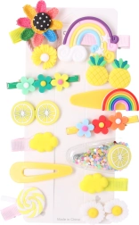 Χαριτωμένο σετ με 14 πολύχρωμα κοκαλάκια μαλλιών για κορίτσια, που συνδυάζει στυλ και πρακτικότητα. Διάφορα σχήματα και μοτίβα – από λουλούδια μέχρι ουράνια τόξα και φρούτα – κρατούν το χτένισμα σταθερά και χαρίζουν παιχνιδιάρικη πινελιά σε καθημερινά αλλά και επίσημα outfit. Ιδανικά για νηπιαγωγείο, σχολείο καθώς και για γάμους ή βαπτίσεις.