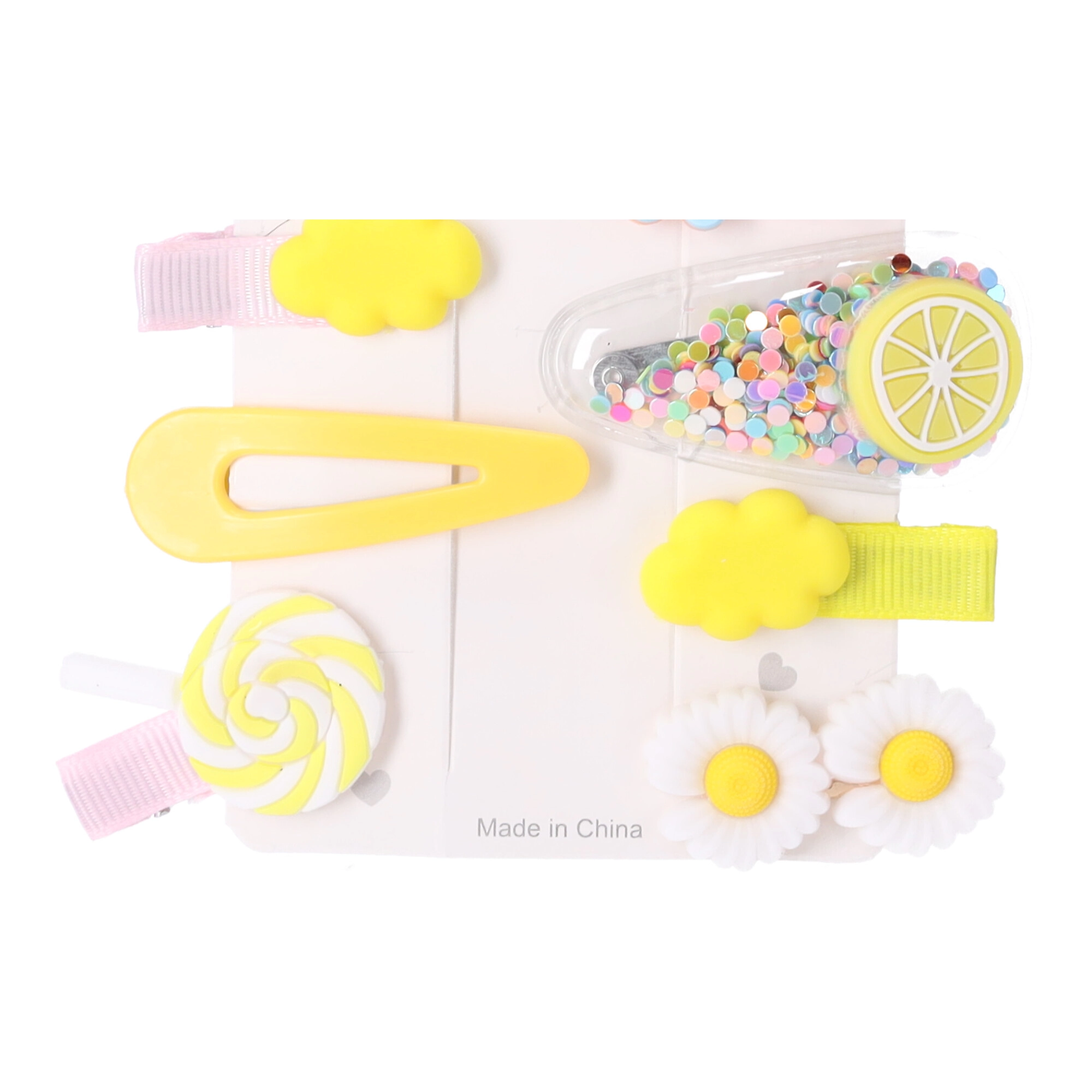 Το σετ 14 τεμ. περιλαμβάνει λουλούδια, ουράνια τόξα, φρούτα και συννεφάκια σε παστέλ και λαμπερές αποχρώσεις. Ταιριάζουν εύκολα με ρούχα και περίσταση.