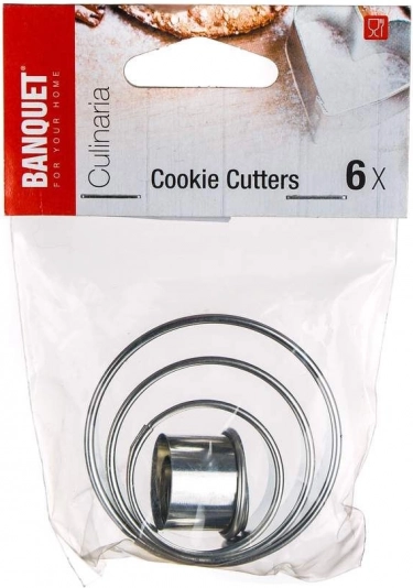 Πρακτικό σετ κουπάτ σε σχήμα κύκλου από ανθεκτικό ανοξείδωτο ατσάλι για εύκολο ψήσιμο και ζαχαροπλαστική διακόσμηση. Περιλαμβάνει 6 τεμάχια σε διαφορετικές διαμέτρους, κατάλληλα για μπισκότα, κουλουράκια βουτύρου, φοντάν και μάρζιπαν. Το ανοξείδωτο ατσάλι εξασφαλίζει μεγάλη αντοχή, εύκολο καθάρισμα και ακριβή σχήματα.