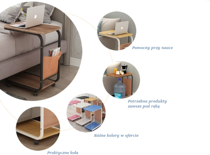 Ομαλή μετακίνηση στο σπίτι χάρη στα περιστροφικά ροδάκια. Φέρτε το τραπεζάκι δίπλα στον καναπέ, το κρεβάτι ή τη γωνιά εργασίας ακριβώς εκεί όπου το χρειάζεστε.