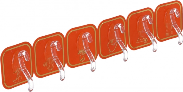 Βάλτε τάξη σε ελάχιστο χρόνο. Αυτά τα αυτοκόλλητα γαντζάκια αρκεί να τα κολλήσετε σε καθαρή και λεία επιφάνεια και μπορείτε να τα χρησιμοποιήσετε άμεσα. Χάρη στον συνδυασμό διάφανου γάντζου και πορτοκαλί βάσης δείχνουν κομψά σε κουζίνα, μπάνιο και χολ.