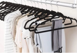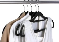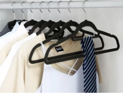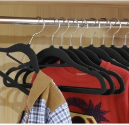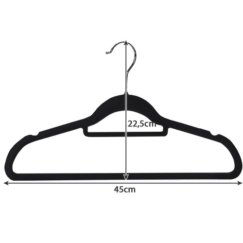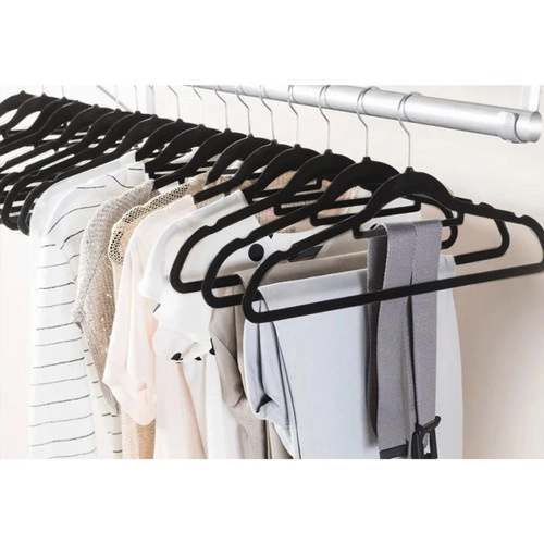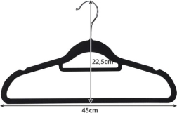 - Υψηλής ποιότητας υλικό: Οι κρεμάστρες είναι κατασκευασμένες από πλαστικό και καλυμμένες με απαλό βελούδο, αποτρέποντας το γλίστρημα των ρούχων.