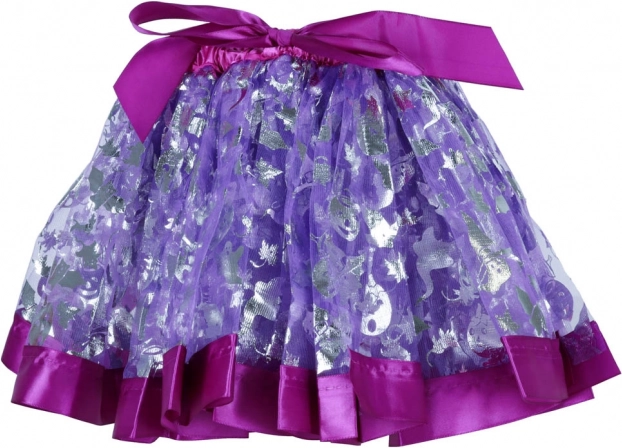 Μωβ φουστίτσα με γυαλιστερά ασημί σχέδια και ελαστική μέση που προσαρμόζεται εύκολα σε διαφορετικούς σωματότυπους.