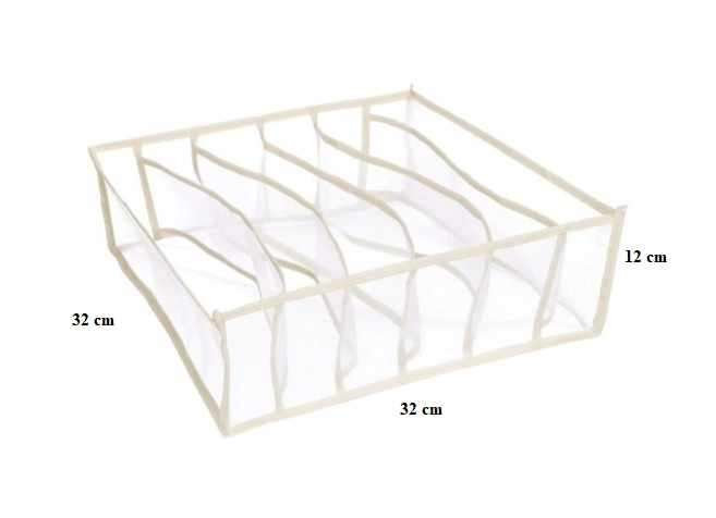 Βάλτε τάξη στα συρτάρια σας με τον πρακτικό οργανωτή με 6 θήκες. Το ελαφρύ και διαπνέον υλικό διατηρεί τα ρούχα καθαρά και τακτοποιημένα, ενώ τα διάφανα πλαϊνά προσφέρουν γρήγορη επισκόπηση του περιεχομένου. Ιδανικός για σουτιέν, κάλτσες, κιλότες, γραβάτες ή φουλάρια για συρτάρια και ντουλάπες.
