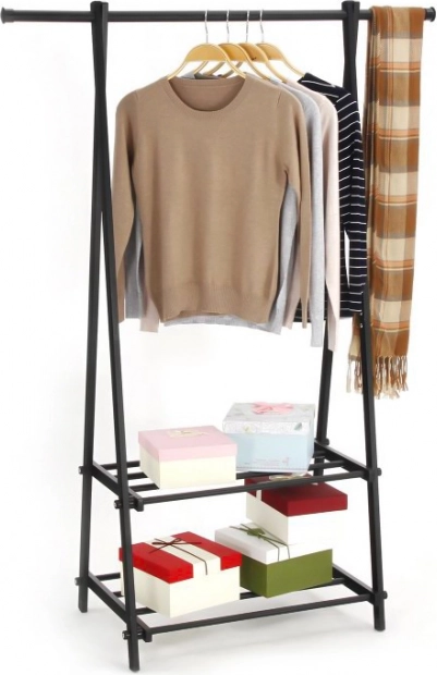 Η συμπαγής και ελαφριά κρεμάστρα βοηθά να διατηρείτε σε τάξη ρούχα και αξεσουάρ. Ο μινιμαλιστικός σχεδιασμός εντάσσεται εύκολα σε μοντέρνους χώρους, προσφέροντας αρκετό χώρο για παλτά, πουκάμισα και μπουφάν, ενώ τα δύο ράφια χωρούν παπούτσια, κουτιά ή τσάντες.