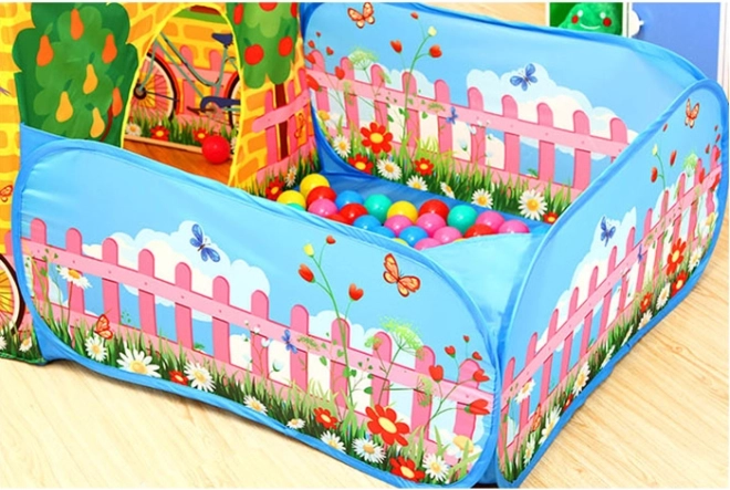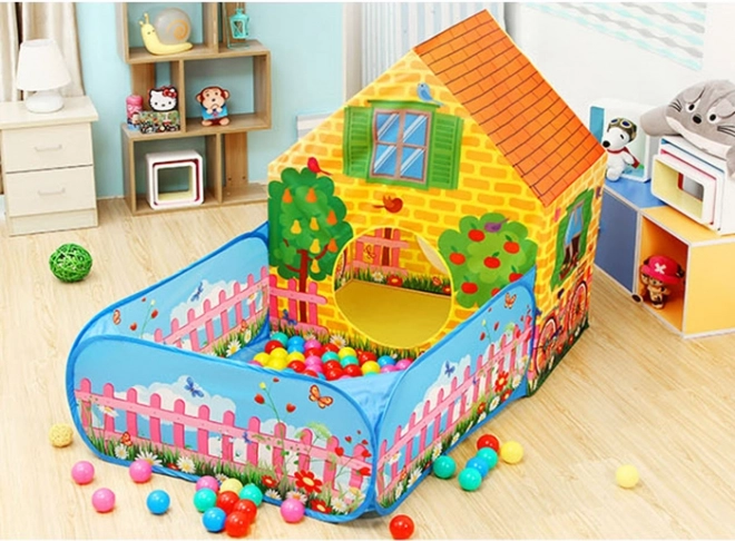 Η παιδική σκηνή σε σχήμα σπιτιού από τη μάρκα IPLAY είναι απολύτως ιδανική για παιχνίδι στο σπίτι και στον κήπο. Με το πολύχρωμο αγροτικό μοτίβο που περιλαμβάνει φράχτη και ζωντανές εικόνες, είναι σχεδιασμένη ως φαρμα με μικρό κήπο. Ο σταθερός σκελετός και η γρήγορη συναρμολόγηση εξασφαλίζουν εύκολο χειρισμό και μετακίνηση μέσα στο δωμάτιο ή στον κήπο. Η σκηνή διαθέτει δύο στρογγυλές εισόδους.