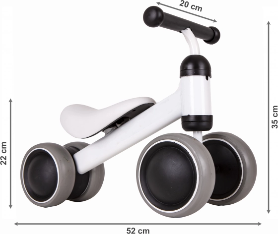 Ελαφριά κατασκευή που επιτρέπει εύκολο χειρισμό από μικρά παιδιά. Ο σκελετός από ανθεκτικό πλαστικό και οι μαλακοί τροχοί είναι κατάλληλοι τόσο για οδήγηση στο σπίτι όσο και έξω. Το ποδηλατάκι διαθέτει τιμόνι με μπλοκάρισμα που περιορίζει την υπερβολική περιστροφή, μειώνοντας έτσι τον κίνδυνο πτώσης. Η μαλακή σέλα εξασφαλίζει άνεση κατά την οδήγηση και η συνολική κατασκευή δίνει έμφαση στην ασφάλεια και τη χαρά των παιδιών.