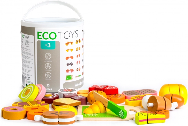 Αυτό το υπέροχο σετ πολύχρωμων τροφίμων που γνωρίζουμε από την κουζίνα είναι ένα εξαιρετικό δώρο για κάθε παιδί. Το παιδί σας θα μάθει να αναγνωρίζει αγαπημένα τρόφιμα και, χάρη στη δυνατότητα κοψίματος και επανασύνδεσης, θα εξασκήσει τις χειρωνακτικές του δεξιότητες.