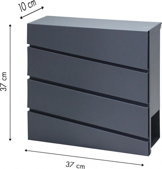 Ο κομψός και διαχρονικός σχεδιασμός του γραμματοκιβωτίου σε ανθρακί απόχρωση συμπληρώνει ιδανικά τον εξωτερικό χώρο του σπιτιού, του γραφείου ή της επιχείρησής σας.