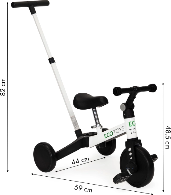 Το παιδικό τρίκυκλο ECO TOYS αποτελεί μια καινοτόμα λύση για τους μικρούς εξερευνητές που θέλουν να μάθουν ποδήλατο. Αυτό το μοντέλο συνδυάζει ποδηλατάκι ισορροπίας με κλασικό ποδήλατο, επιτρέποντας εύκολη μετάβαση και προσαρμογή στην ανάπτυξη του παιδιού.