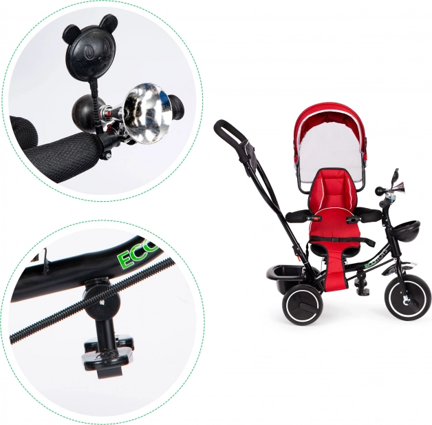 Η ECOTOYS προσφέρει ένα στιβαρό και συνάμα κομψό τρίκυκλο για παιδιά από 12 μηνών. Το τρίκυκλο είναι εξοπλισμένο με: