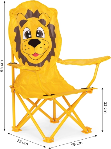 Προσφέρετε στα παιδιά τον δικό τους άνετο χώρο σε κάθε περιπέτεια. Η παιδική πτυσσόμενη καρέκλα με χαρούμενο σχέδιο προσώπου λιονταριού συνδυάζει ασφάλεια, άνεση και αντοχή. Ο ατσάλινος σκελετός εξασφαλίζει σταθερότητα, ενώ το ποιοτικό κάλυμμα από πολυεστέρα 600D με επίστρωση PU αντέχει στη βροχή και στον ήλιο. Ιδανική για τον κήπο, τη θάλασσα, το κάμπινγκ και το πικνίκ.