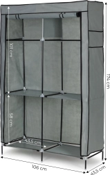 Αναζητάτε πρακτική λύση για οικονομική και οργανωμένη αποθήκευση ρούχων; Η υφασμάτινη ντουλάπα MODERNHOME σε κομψό γκρι συνδυάζει γενναιόδωρο αποθηκευτικό χώρο με ελαφρότητα και φορητότητα. Με 2 μπάρες ανάρτησης και 4 στιβαρά ράφια αποθηκεύετε άνετα πουκάμισα, φορέματα, μπουφάν, διπλωμένα ρούχα και παπούτσια.