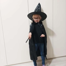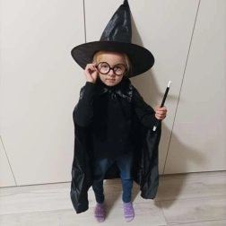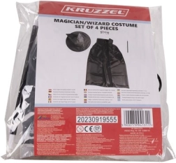 Αυτό το στιλάτο κοστούμι μάγου προσφέρει όλα όσα χρειάζονται τα παιδιά για να δημιουργήσουν εντυπωσιακή και ασφαλή μεταμφίεση. Η ελαφριά κάπα από ευχάριστο υλικό πέφτει κομψά και, χάρη στο δέσιμο, μένει καλά στη θέση της. Το μυτερό καπέλο ανοίγει μόνο του μετά την αφαίρεση, δημιουργώντας εφέ «wow». Τα στρογγυλά γυαλιά χωρίς φακούς είναι άνετα και ασφαλή στο παιχνίδι, ενώ το ραβδί από ανθεκτικό πλαστικό ολοκληρώνει κάθε κόλπο.
