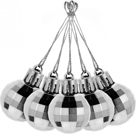 Το σετ περιλαμβάνει ποικίλα στυλ, από κομψά λευκά έως λαμπερές ασημένιες ντισκόμπαλες.