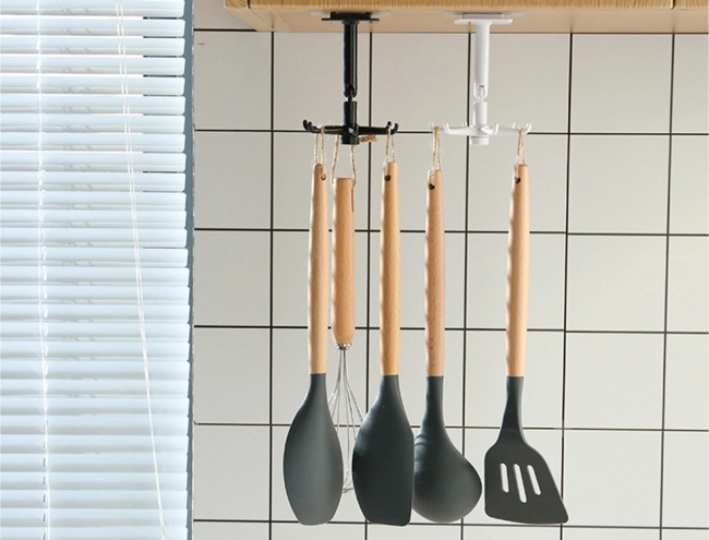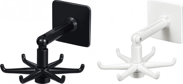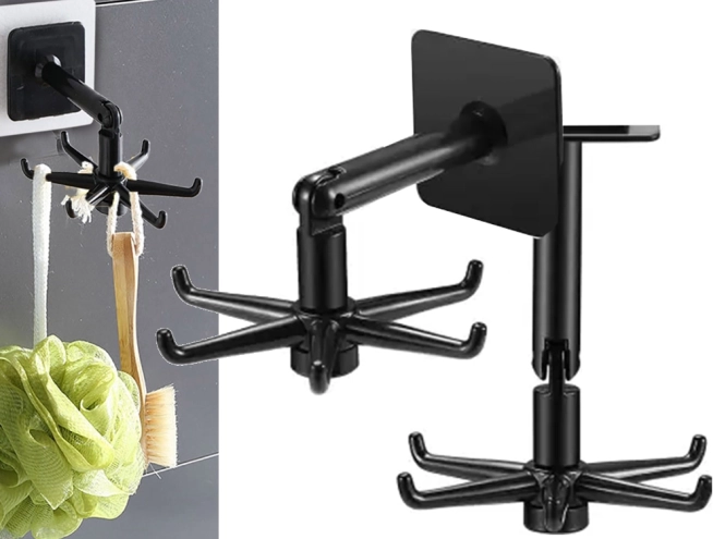Η κρεμάστρα είναι κατασκευασμένη από ποιοτικό πλαστικό και έχει σχεδιαστεί ώστε να παρέχει πολυλειτουργική λύση κρεμάσματος όχι μόνο για κουζινικά σκεύη, αλλά και για αξεσουάρ μπάνιου όπως σφουγγαράκια ή πετσέτες. Χάρη στον περιστρεφόμενο σχεδιασμό 360° μπορείτε να έχετε εύκολη και γρήγορη πρόσβαση σε όλα τα αποθηκευμένα αντικείμενα.
