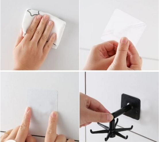 Η κρεμάστρα εγκαθίσταται εύκολα με αυτοκόλλητη κόλλα, η οποία κρατά το προϊόν σταθερά στη θέση του. Αυτός ο σχεδιασμός σάς επιτρέπει να εξοικονομείτε χώρο και να διατηρείτε το σπίτι σας οργανωμένο και τακτοποιημένο.