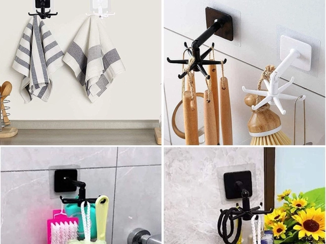 Έξι βραχίονες για κρέμασμα διαφόρων αντικειμένων, ιδανικοί για κουζινικά σκεύη και αξεσουάρ μπάνιου.