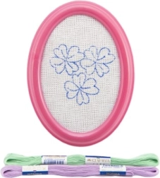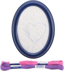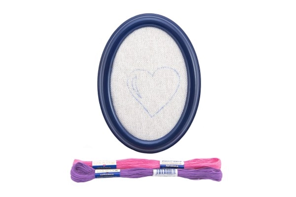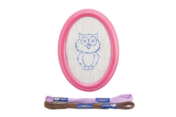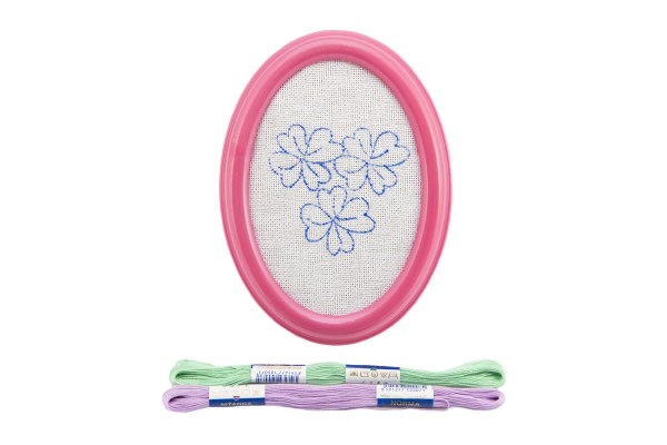 - Πλαστική κορνίζα με τεντωμένο καμβά και προεκτυπωμένη εικόνα, δύο επιπλέον σχέδια για κέντημα, κλωστές