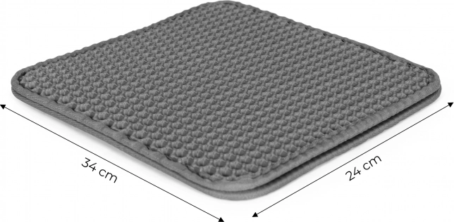 Πρακτικό δίστρωτο υπόστρωμα για την τουαλέτα γάτας σε κομψό γκρι χρώμα από τη μάρκα PETSI, που διατηρεί τον χώρο γύρω από την τουαλέτα καθαρό. Χάρη στο επάνω στρώμα με δικτυωτή δομή, τα σκορπισμένα σωματίδια άμμου παγιδεύονται, πέφτουν στο εσωτερικό του υποστρώματος και αδειάζουν εύκολα. Το υπόστρωμα είναι αντιολισθητικό, ανθεκτικό, ασφαλές για τις πατούσες και καθαρίζεται εύκολα.