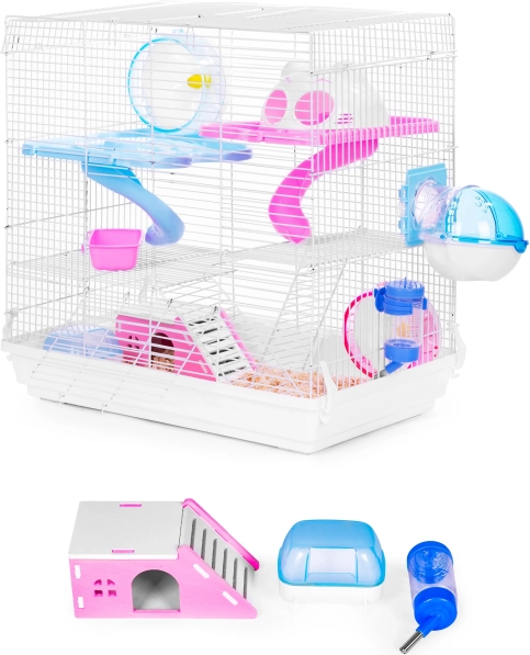 Περιλαμβάνονται σπιτάκι, μπολ, ποτίστρα, δύο τσουλήθρες, τέσσερα επίπεδα και τροχός τρεξίματος – όλα όσα χρειάζεται το κατοικίδιό σας για άνεση, δραστηριότητα και ξεκούραση.