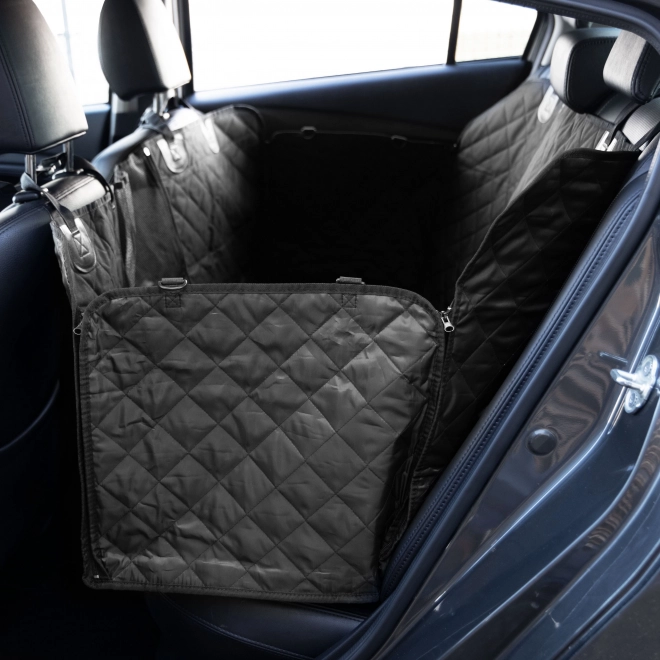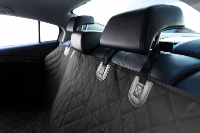 Καπιτονέ, ανθεκτικό κάλυμμα που καλύπτει ολόκληρο το πίσω κάθισμα και προστατεύει την ταπετσαρία από τρίχες, λάσπη και γρατζουνιές. Δύο τσέπες κρατούν το λουρί, λιχουδιές και μικροαντικείμενα πάντα εύκολα προσβάσιμα.