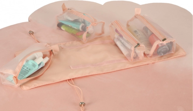 Αυτή η ροζ καλλυντική τσάντα έχει σχεδιαστεί για όσους αναζητούν άνεση και αποτελεσματικότητα στην οργάνωση των καλλυντικών τους προϊόντων στα ταξίδια. Η τσάντα είναι εξοπλισμένη με τέσσερις διαφανείς θήκες με φερμουάρ, που επιτρέπουν εύκολη πρόσβαση και ορατότητα του περιεχομένου. Οι θήκες είναι πλήρως αποσπώμενες, προσφέροντας υψηλή ευελιξία στη χρήση.