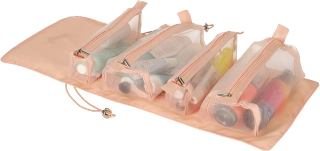 Τέσσερις αποσπώμενες θήκες με φερμουάρ είναι κατασκευασμένες από διαφανές υλικό, που επιτρέπει εύκολη επισκόπηση και οργάνωση των καλλυντικών σας. Οι αποσπώμενες θήκες προσφέρουν ευελιξία στη χρήση.