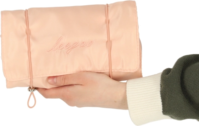 Η καλλυντική τσάντα διαθέτει πρακτικό σχεδιασμό που επιτρέπει το τύλιγμα σε συμπαγές σχήμα. Είναι ιδανική για ταξίδια, όπου εξοικονομεί χώρο στις αποσκευές.
