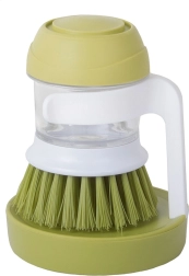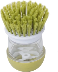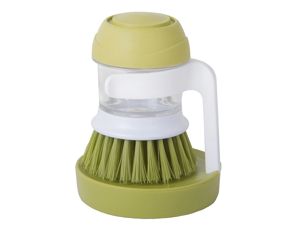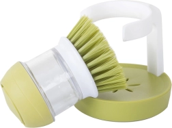Πρακτική βούρτσα πιάτων με ενσωματωμένο δοσομετρητή απορρυπαντικού και σταθερή βάση για καθαρή και τακτοποιημένη κουζίνα. Με πάτημα του επάνω κουμπιού απελευθερώνεται ακριβής ποσότητα προϊόντος, ώστε το πλύσιμο να είναι γρήγορο και υγιεινό. Χάρη στις πυκνές τρίχες απομακρύνει εύκολα επίμονους ρύπους και καμένα υπολείμματα, ενώ η αποστραγγιστική βάση κρατά τον πάγκο χωρίς λιμνάζοντα νερά.